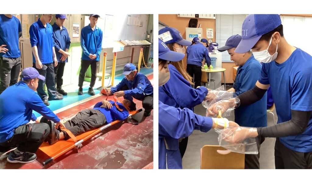 ・応急処置: 万が一の負傷者に備え、止血や搬送などの応急処置訓練も実施しました。