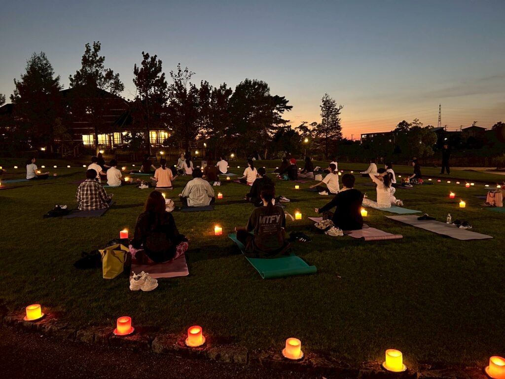 キャンドルヨガは、夜の芝生広場でキャンドルの灯りに包まれながら行う特別なヨガ体験。虫の音を聞きながら、幻想的な雰囲気の中で心と体を整える、いつもとは違う贅沢な時間だったそうです。