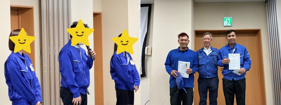 今回は、日本語検定N3に合格した社員の表彰も行いました。