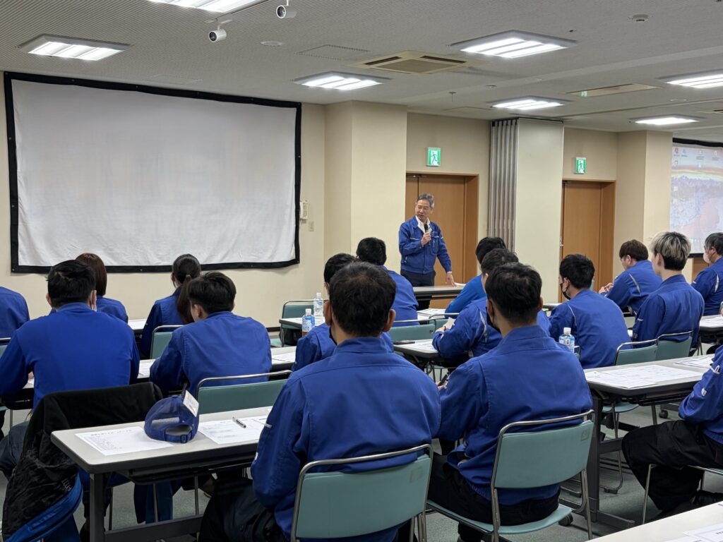 まず社長から、現在の世界情勢についてのお話があり、特に塗装に使用するシンナーの価格が大幅に上昇している現状について触れられました。