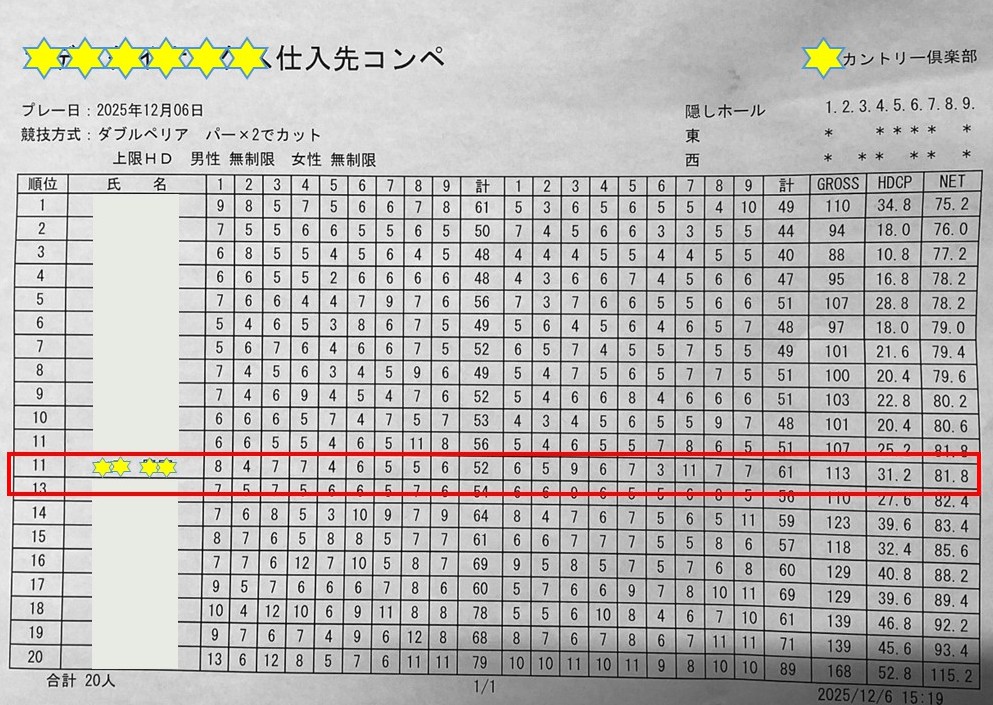 得意先様主催のゴルフコンペが開催され、総勢20名が参加しました。
