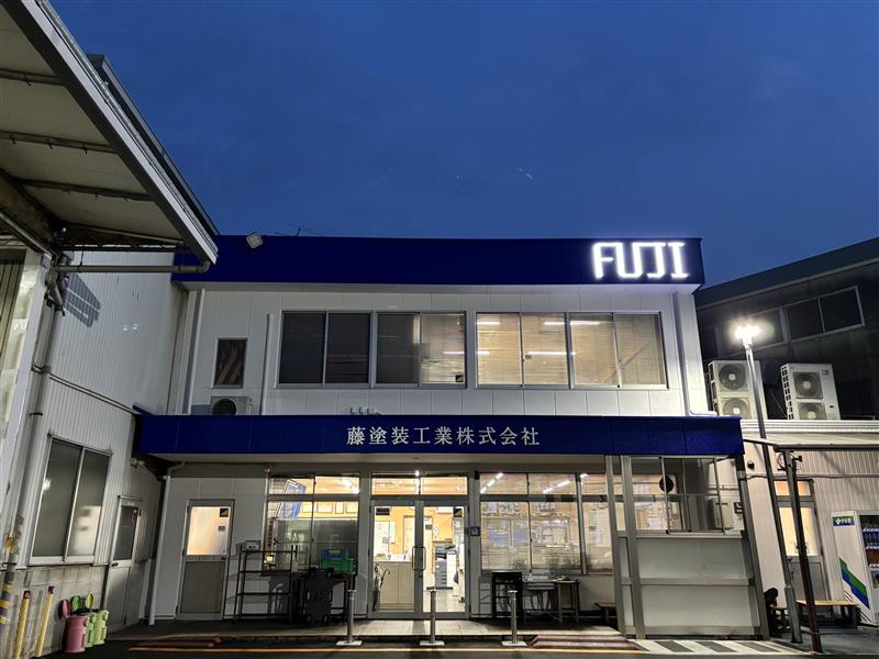 新しく塗り直された壁は明るく清潔感があり、社名文字も鮮やかに蘇りました。さらに今回は特別に、夜間には光る仕様を採用。昼間だけでなく夜でも工場の存在感を放ち、社員や地域の皆さまに安心感を与えられるようになりました。